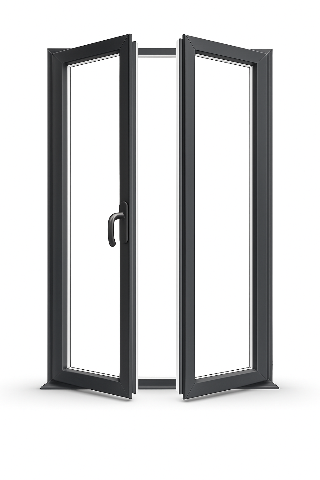 Otevírají se dovnitř a uprostřed nemají sloupek, takže zůstává celý průchod volný. Křídla se dají otevřít o 180 stupnů.