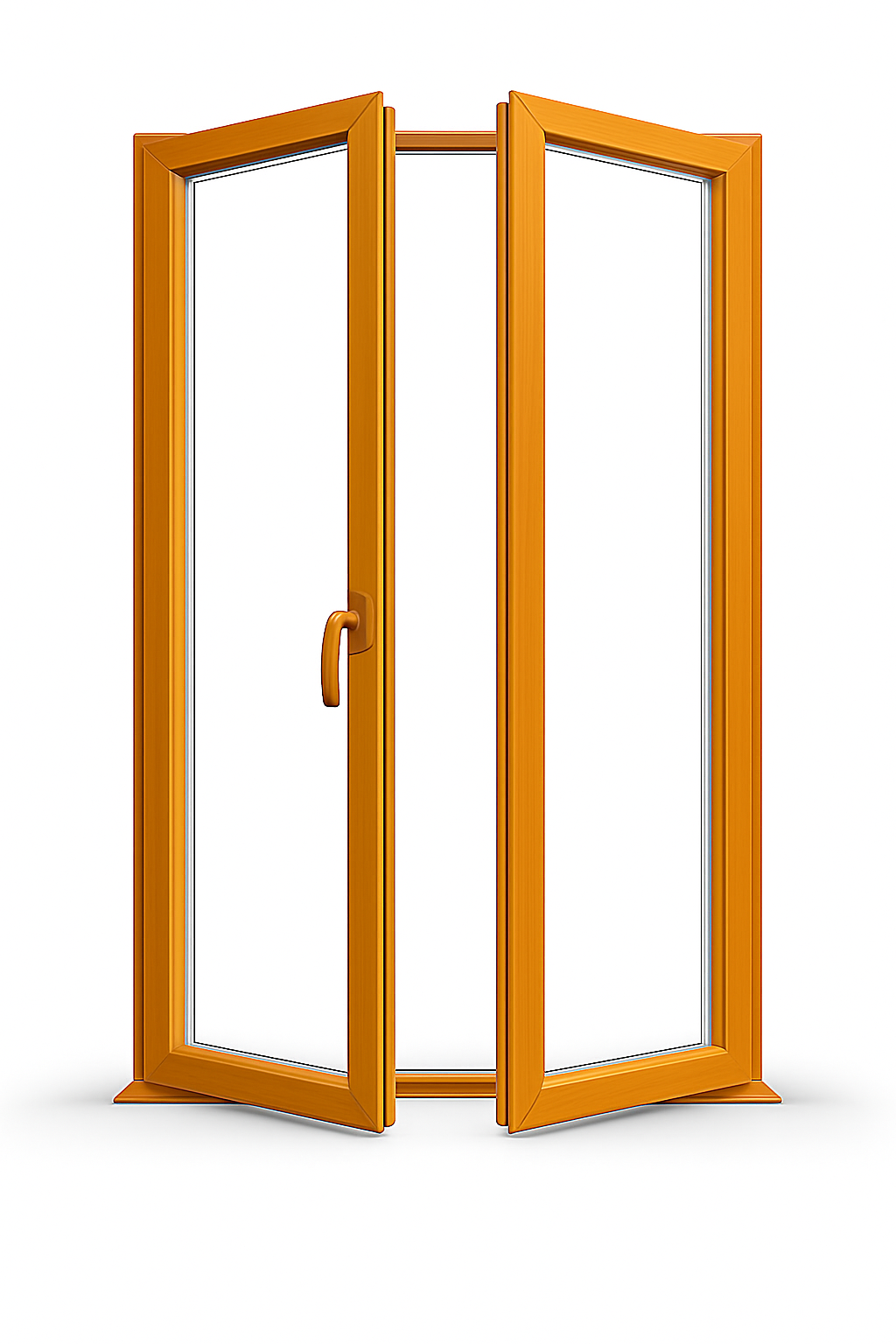 Otevírají se dovnitř a uprostřed nemají sloupek, takže zůstává celý průchod volný. Křídla se dají otevřít o 180 stupnů.