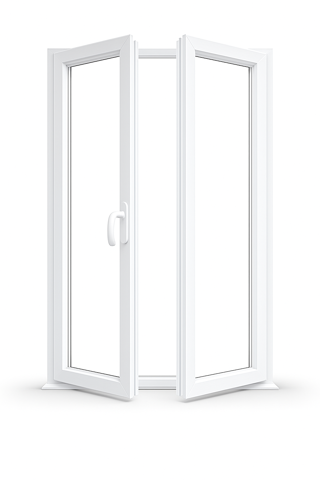 Otevírají se dovnitř a uprostřed nemají sloupek, takže zůstává celý průchod volný. Křídla se dají otevřít o 180 stupnů.
